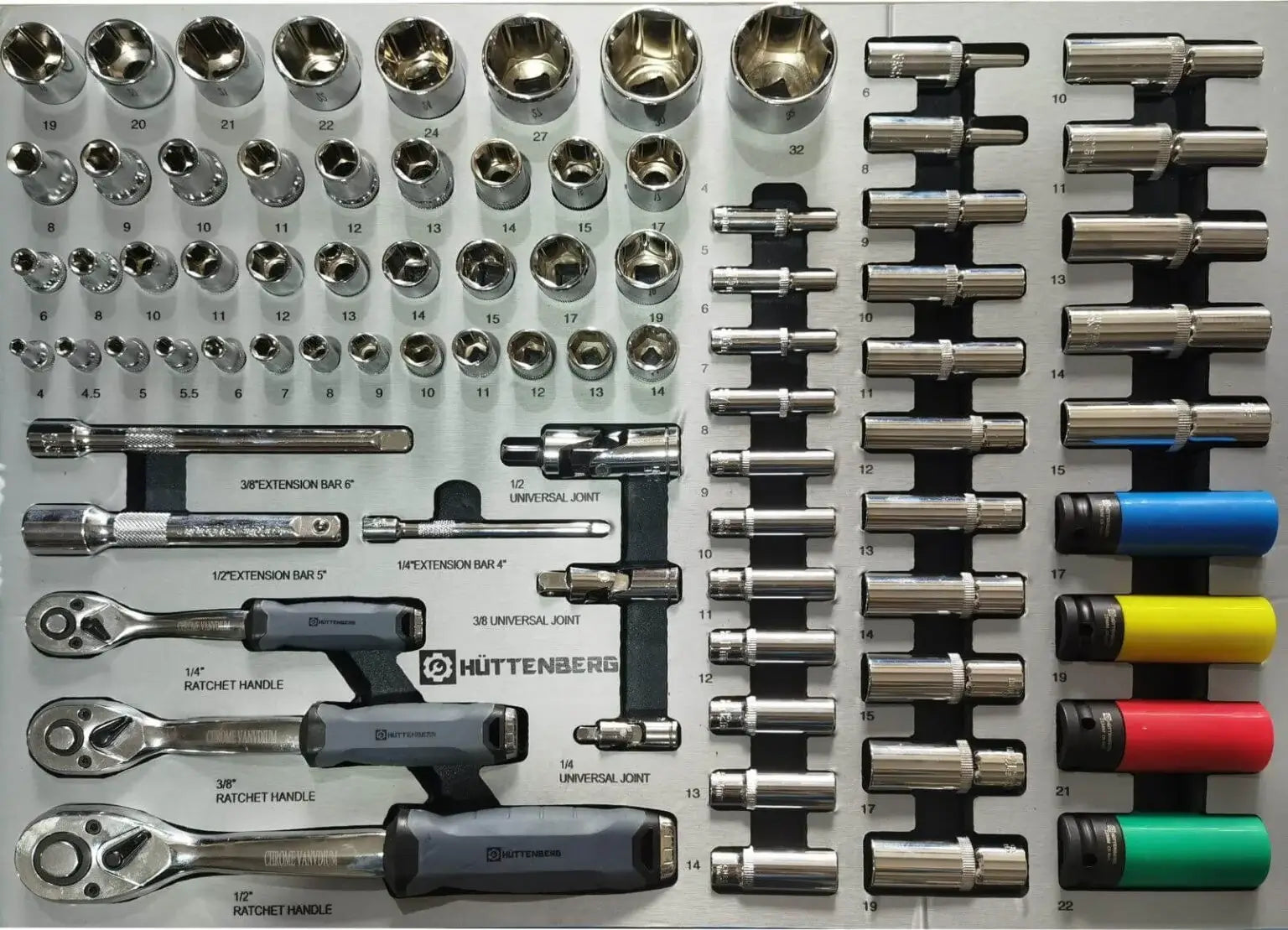 Il punto forte di questo set è la chiave dinamometrica integrata, che consente un controllo preciso della coppia durante le operazioni di serraggio. Questa caratteristica distingue il carrello Hüttenberg per la sua affidabilità e versatilità, rendendolo una scelta ideale per una vasta gamma di esigenze lavorative e di hobby.