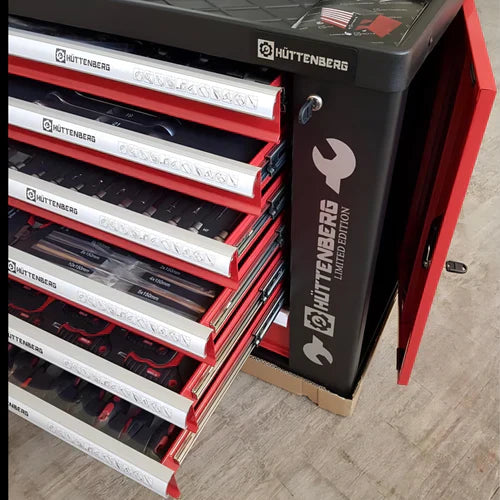 Questo set completo di attrezzi della Hüttenberg offre una soluzione completa con 259 pezzi, ideale per professionisti e hobbisti esigenti. Il mobile robusto e spazioso è dotato di 8 cassetti e 6 scomparti, garantendo un'organizzazione ottimale degli strumenti.